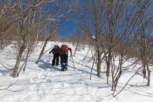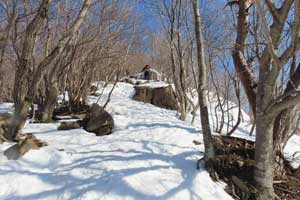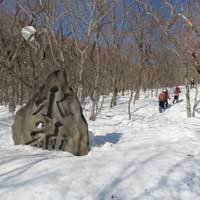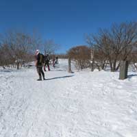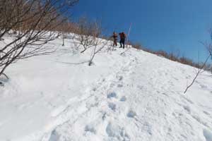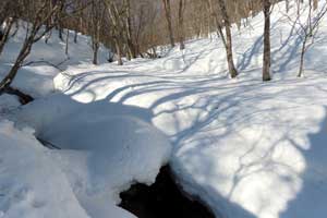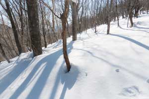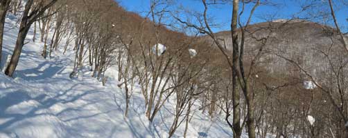 8:30 自宅発⇒9:20 泉ヶ岳スキー場P→9:35 水神コース登山口→10:30 水神→11:35 泉ヶ岳昼食 12:00 下山開始/北泉コース→12:40 三叉路→13:30 水神→14:10 スキー場P下山⇒14:50 帰宅 (歩程=4h25mi) 絶好の晴天、スパッツを着け、陽除け止めクリームを塗り、サングラスを掛ける。ピッケルを携えスタート。天気図の本州の中央付近に広い間隔を持つ横線が一本、冬型が崩れ珍しい気圧配置、東北6県を含め広範囲に晴れ予報。冬のシーズンに数日しかない好天。蔵王の熊野岳・刈田岳を調べると、何と80%迄成長していた樹氷が先日19日の暴風で60%が崩れてしまったとの悲報。10年ほど前、吹雪で途中撤退した安達太良山に再挑戦するかと検討するも見送り。身近なベースフィールド泉ヶ岳をチョイス。トレースは深い雪でよく締まっている。水神からは勾配も急になりいつもはアイゼンを着けるが今年は雪が多く岩などが露出せず歩き易い。大岩の辺りと賽の河原は急登だが、ステップもあり、ピッケルを杖にしてアイゼンは着けずに登る。山頂を進んだ展望地で広がる絶景を眺めながら昼餉。風もなく穏やか。最高気温は3月並みの12℃を予想していたが、さすが山頂、手が冷たい。下山は予定を変更し北泉コース、トレースはしっかりしている。熊笹平まで下り三叉路まで登り返す途中で北泉ヶ岳に登って来たという単独女性と、三叉路でこれから北泉ヶ岳に登るという単独女性と遭い会話。元気で頼もしい。当方は北泉ヶ岳は登らずに南麓の鞍部を進み急坂を下る。左手に泉ヶ岳を道連れに深い雪の中を緩やかに下る。春にはサンカヨウ等が咲くお花畑の辺りでコーヒーを喫む。温かい、旨い。雪中の至福の時。雪に埋もれた樋沢川を渉り、合流した水神コースを進むと山頂で隣り合わせた男女に追いつく。「好い山でしたね」挨拶を交わして先行する。雪を愉しむ。冬を遊ぶ。