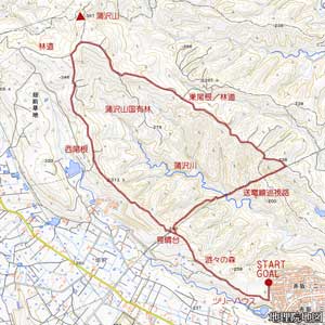 8:50 自宅発⇒9:10 赤坂登山口→9:40 見晴台→10:25 西尾根/畑前草地→10:55 林道/蒲沢山→11:30 東尾根昼食 11:50 発→12:50 送電線巡視路/見晴台→13:15 赤坂下山⇒13:40 帰宅 (歩程=3h45mi)