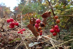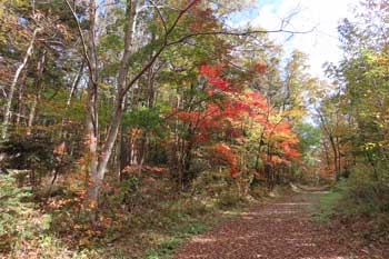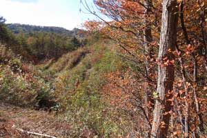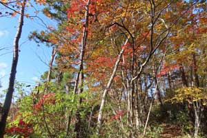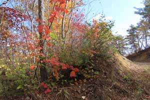 ![]() ![]() ![]() ![]() ![]() ![]() 分岐から左の蒲沢山頂きは踏まず東尾根の未舗装の林道をゆったり南下する/サルトリイバラの赤い実 陽ざしにリンドウの花が開く/林道の土手を飾る灌木の紅葉が綺麗/臙脂の紅葉はオトコヨウゾメか、赤い可愛い実が付く ![]() ![]() ![]() 送電線巡視路、陽射しが温かい/巡視路の谷間、カエデが鮮やかに彩る |