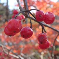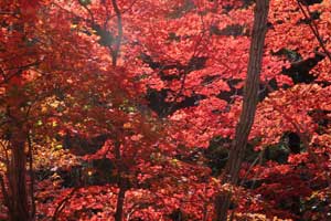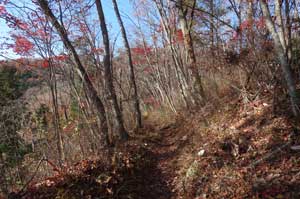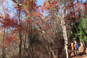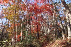 帰宅 (歩程=3h45mi) 11月霜月、秋晴れの週末、登山口にある大梅寺の参道を登り羅漢仏に挨拶、本堂にお参りする。観音堂で健康と平穏を祈り合掌礼拝。作務衣を着た女性に挨拶すると「今日は座禅会がありまして準備中です」。夏目漱石も参禅したという座禅会に一度参加してみたいものだ。寺裏の急坂を上り尾根道に出る。ヤブムラサキが勢いよく実を散りばめる。緩やかにトレイルを進むと紅葉の先に何の木か赤い木の実が可愛いらしい。東西に長く延びる山塊、優しく微笑む石仏に手を合わせ、左手の樹間から大白山を垣間見ながら進む。例年はこの時期、七ツ森に出掛けていたが、昨年12月に訪れた蕃山をチョイス。思惑通り鮮やかな紅葉が連なり見事。山頂の開山堂前で市街の先に広がる太平洋を眺めながらコーヒー休憩。今日は土曜日で登山者も多く数組の登山者が休憩中。話好きの女性がいて山談義に花が咲く。愉しい。西に稜線を下り、鉄塔が立つピークから萱ヶ崎山への巡視路に分け入る。小さな谷を数回渉る変化のあるトレイル、概ね緩やかな雑木林、静かな森。蔵王も望める菅ヶ崎山脇の鉄塔下で昼餉。わっぱの栗ご飯を美味しそうに食している男性、北西の宗弥勒寺方面から登ったという女性三人組。小春日の頂き、穏やかな仙台市民の里山、 魅惑の秋。 |