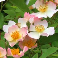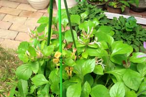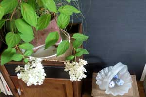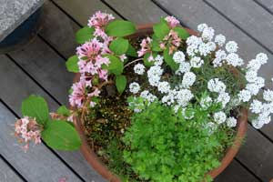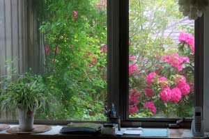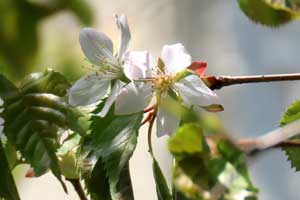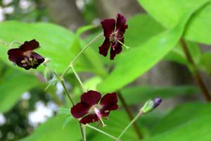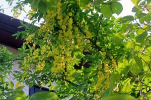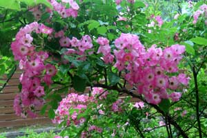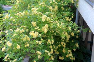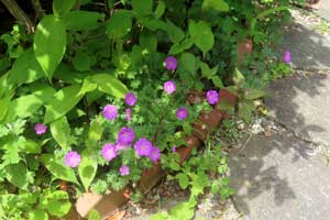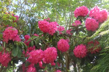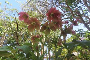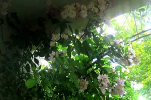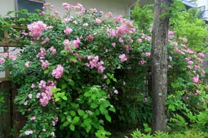 今冬は例年より寒く日本海側では記録的な大雪となる。5月になっても平年より寒い日が続き、体調を崩す。冬季、室内に取り込んだアメリカンブルーは冬が越せず、玄関に置いた観葉植物のドラセナ・ライムライト1鉢も寒さに枯死。我が家の小さなガーデンも昨年より遅れている様で蔓バラ・バレリーナはまだ蕾。冬を耐えたシャクナゲは華やかな紅い花を咲かせた。我が家のお宝・アグレガツムはオレンジの蝶の花を繋ぐ。ムベ(郁子)は昨年に続き可愛いベルをたくさん垂れ、山桜は優しい花が6輪咲く。 |