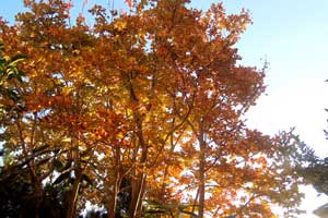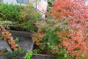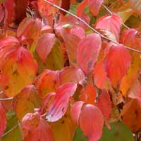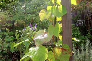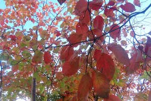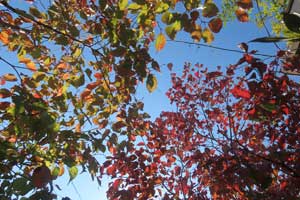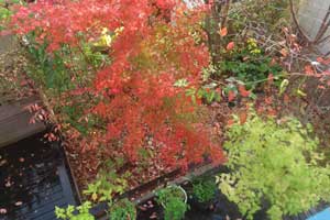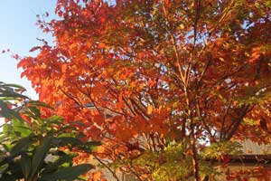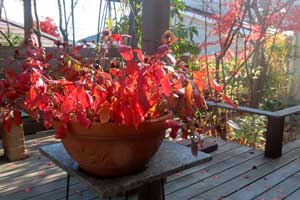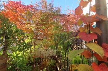我が家の小さなガーデンにも小さな四季が巡る。今秋は紅葉が素晴らしかった。暑い夏を引きずり高温傾向の秋であったが、10月下旬に突然数日冷え込んだ。ヤマボウシが紅く綺麗に色付き、陽射しに輝く紅葉は見事。例年は薄っすら紅葉する先から風で散っていた。紅葉の時期に冷え込み、風が吹かず雨が降らないのが枯れずに綺麗に紅葉する条件か。仙台に住んで8年、最高の紅葉であった。もう一つ、ヤマブドウが見事な彩りを魅せる。山登りの土産で紫の実を拾ってきて、苗床に種を撒き育てて2年、パーゴラ脇の大きな鉢に植え付けた。すくすくと蔓を伸ばし葉を広げる。花は咲かなかったが、秋になると思惑通り葉が色付く。逆光に浮かぶ紅葉は日毎に変わり感嘆。 |